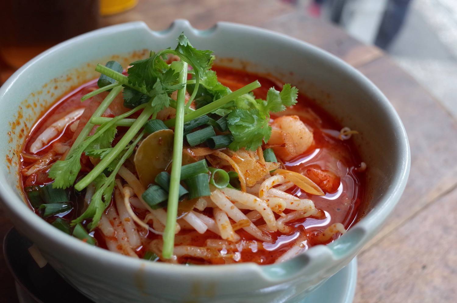 こちらはクイッティオ・トムヤム。トムヤムスープを使った麺料理です。