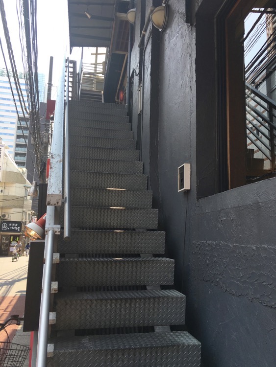 お店の場所が少し分かりにくいので注意。駅から目黒川を越えたあたりまで歩いて行くと、雑居ビルのような建物が左手に見えます。1階は服屋になっていて2階から上が飲食店という構造。