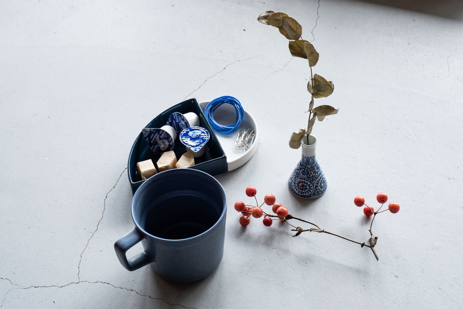 今回ご紹介する「なみだつぼ」も有田町の取材で見つけ、つい自分用に買ってしまったほど可愛い有田焼の一輪挿し。使い始めて半年以上、すっかりぼくのデスクの相棒になりました。