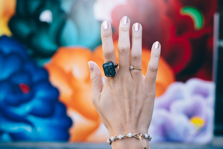 見た目はまったくの大ぶりなジュエルアクセサリーで、ウェアラブルデバイスだとは思えない外観。