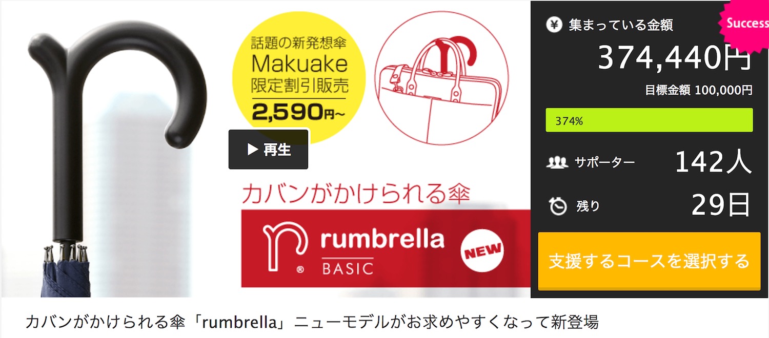 現在出資募集中のrumbrellaのニューモデルは、価格をグッと抑えたベーシックモデルとして登場。価格が6,000円から3,996円に値下がったのに加え、クラウドファンディングで出資すれば限定価格の2,590円で購入可能。
