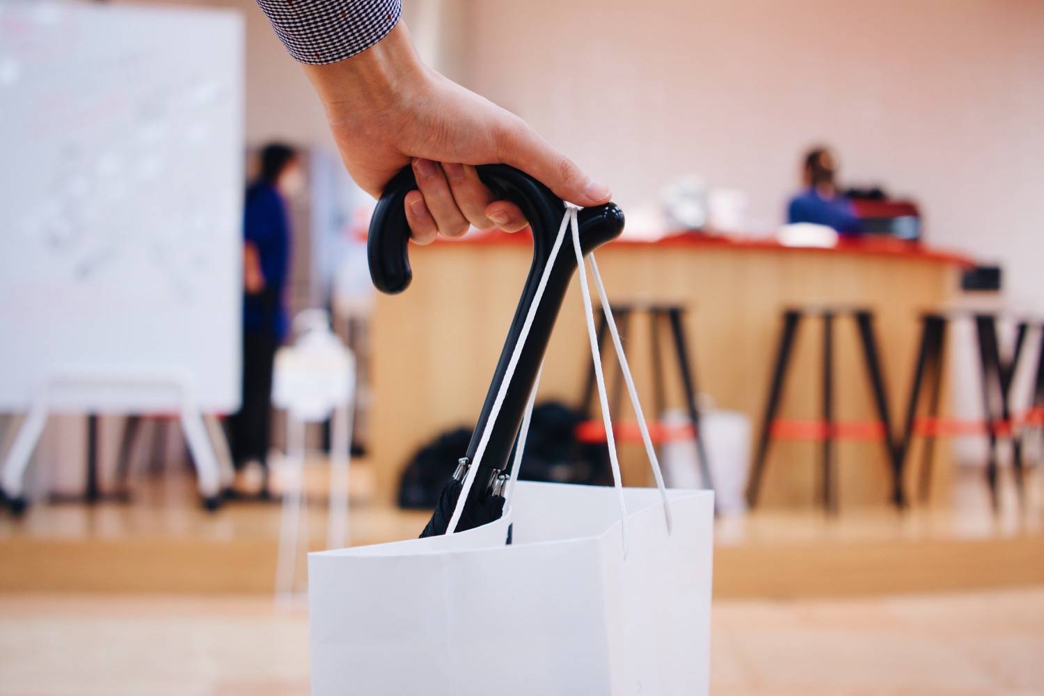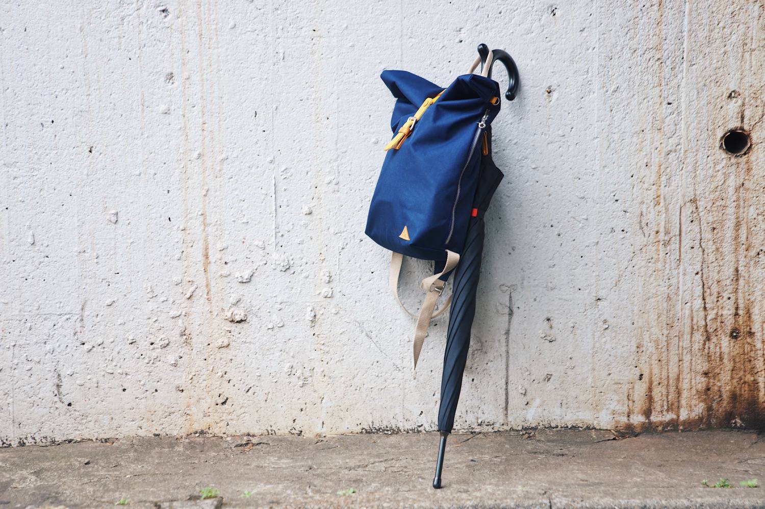 傘の先端がゴムになっていて滑り止めの役割を果たしてくれているので、MacBookやiPad Proなどが入った重めのバッグでも壁に立てかけて自立してくれます。