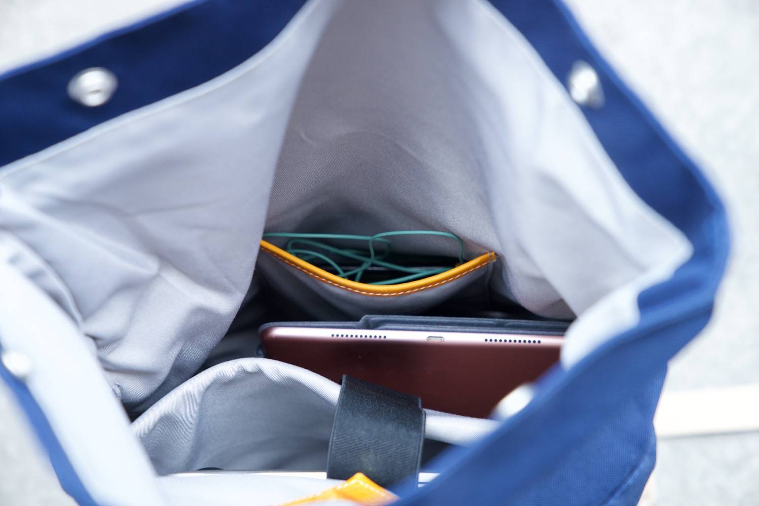 BROOKLYN最大の特徴である上部のロールアップ。便利な点もありますが、物を出し入れする際に毎回くるくるっとするのは正直めんどうです。