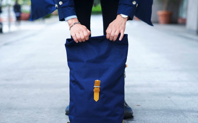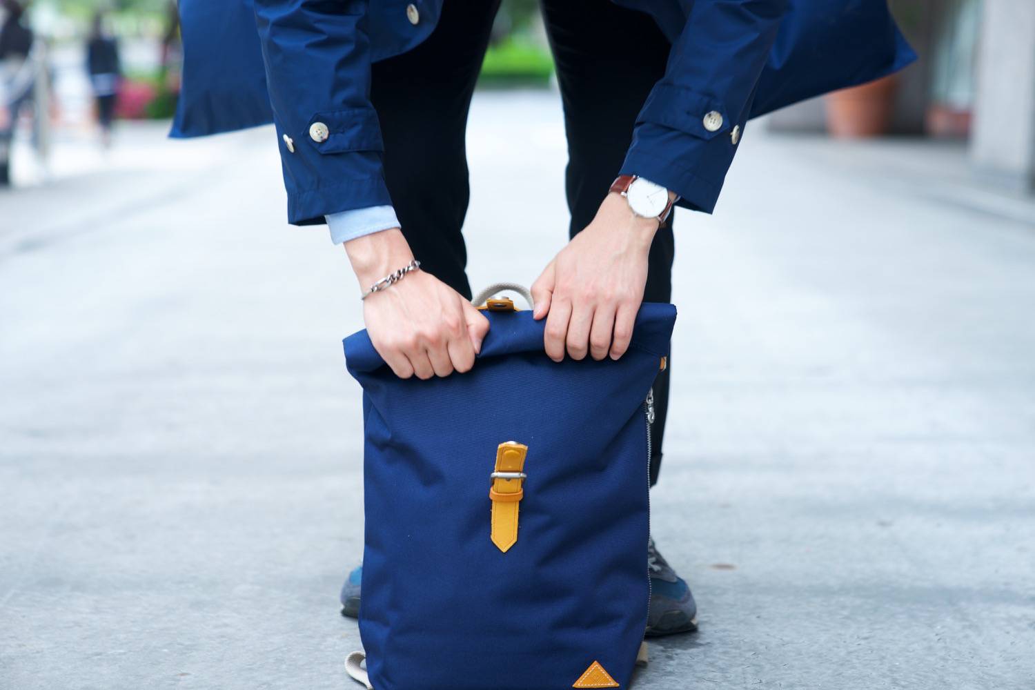 こうした防水の素材使いに加え、ロールアップ構造で生地を何層にも重ねてバッグの上からの浸水を徹底的に防ぐのです。