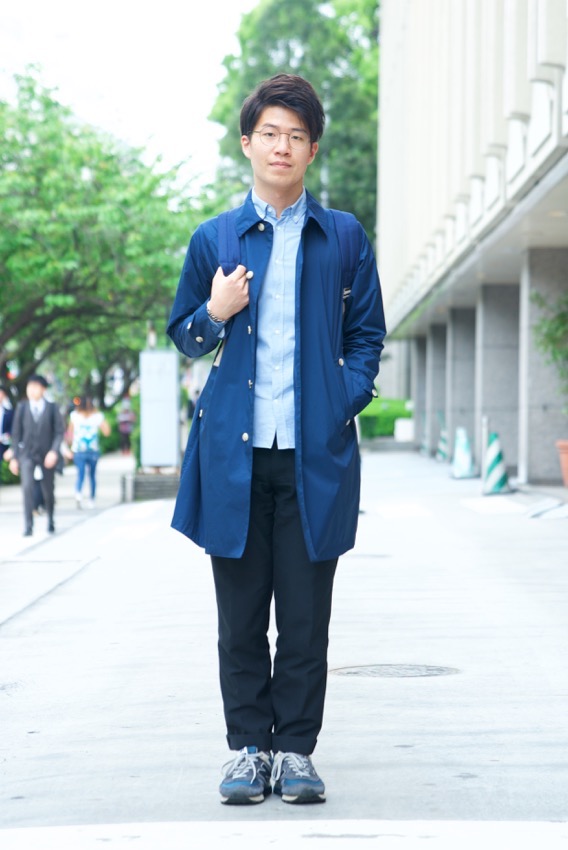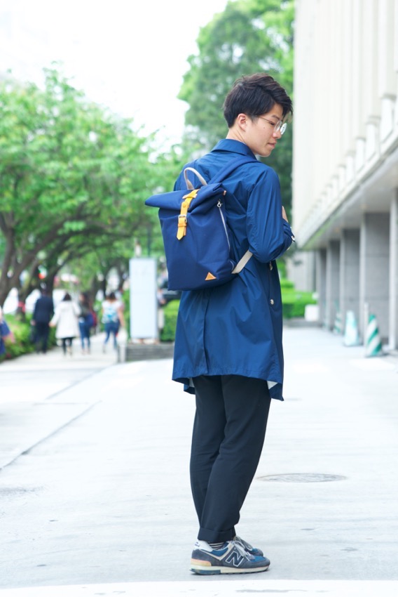 ナイロン素材のスプリングコートを主役にした春コーデ。カジュアル感のある服装なので、その雰囲気を壊さないようにBROOKLYを選びました。