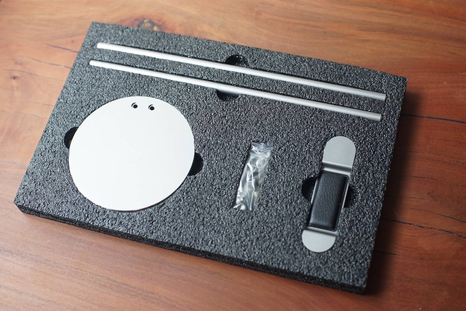 今回は同じくSATECHIより発売されている「ST-AHP」用の保管スタンド「SLIM ALUMINIUM HEADPHONE STAND」もいただきました。