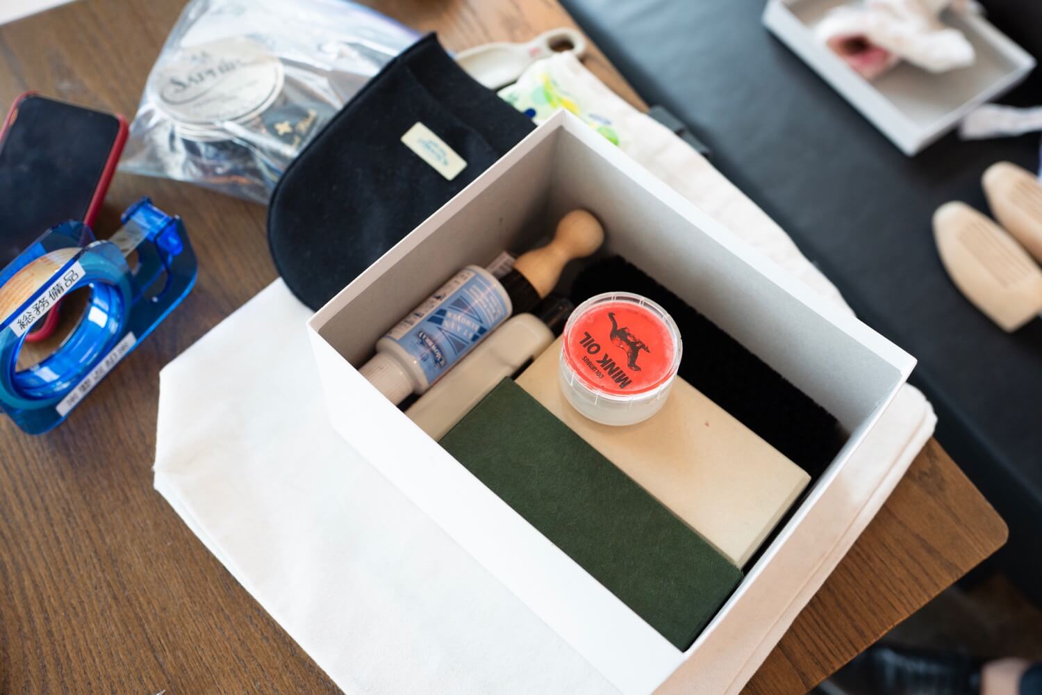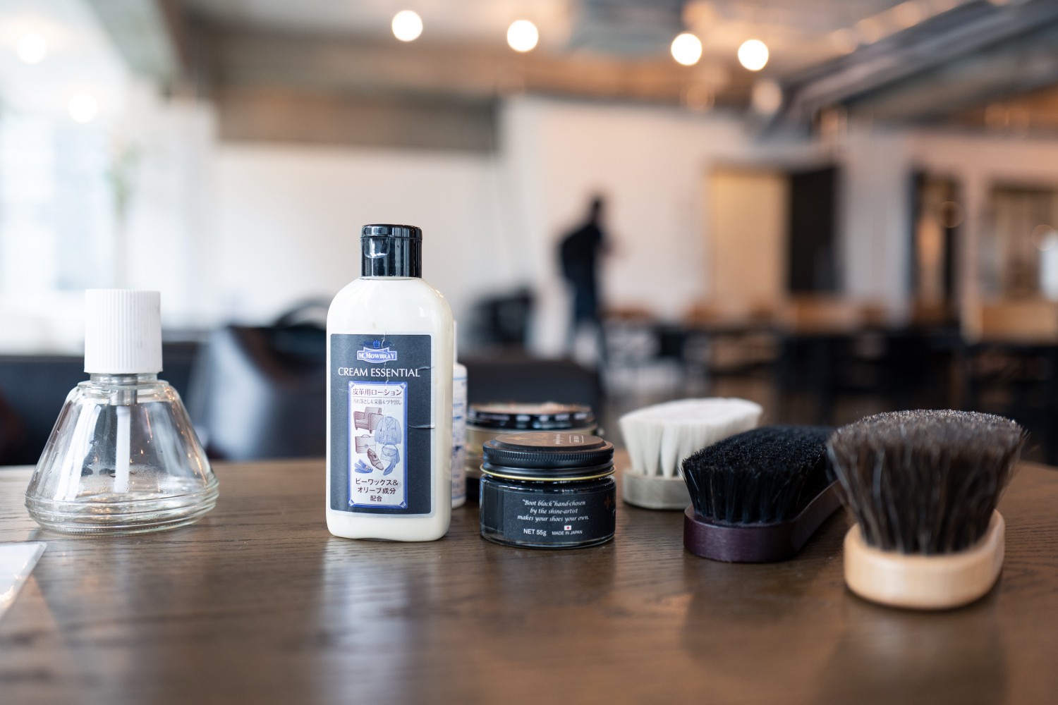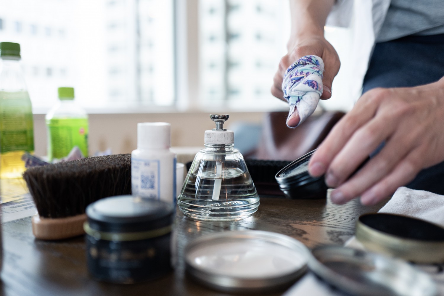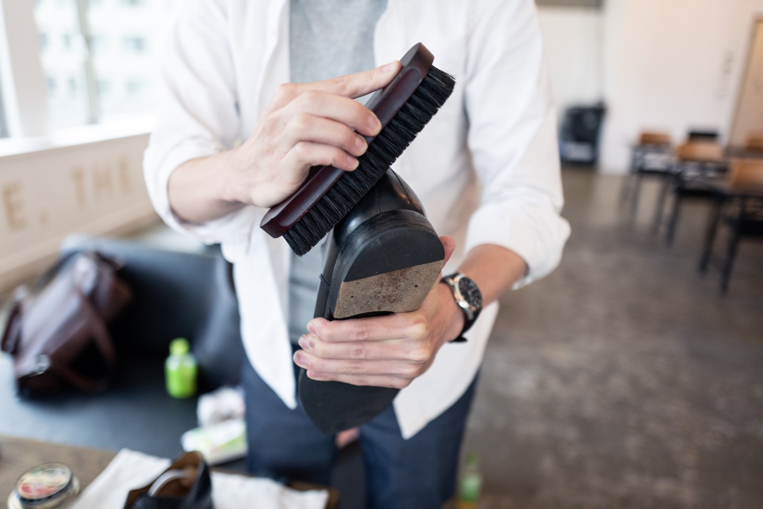 「靴磨きは大きく“シューケア”と“ポリッシュ”があります。まずは基本のシューケアからやっていきましょう。」とこひ先生。