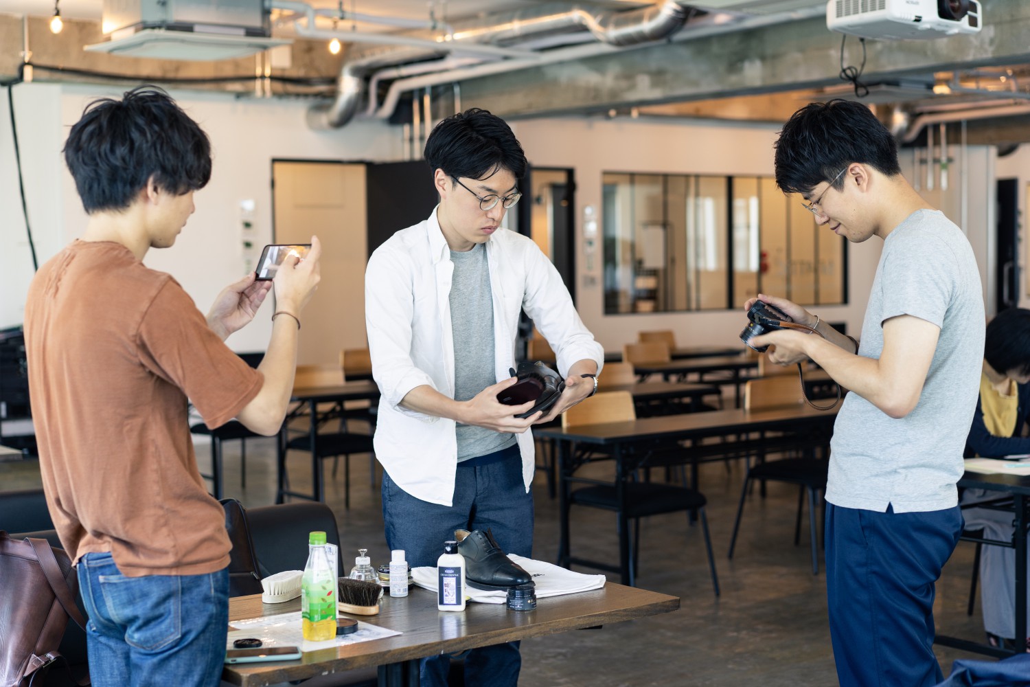 「ぼくはまだ社会人2年目なんですが、こうした活動をしていると『あぁ、あの革靴磨きの人か』と他人から覚えてくれることがとても多くて。ビジネスシーンでも名刺交換をだけで終わらない、より深い関わりができることが嬉しいです。」とのこと。