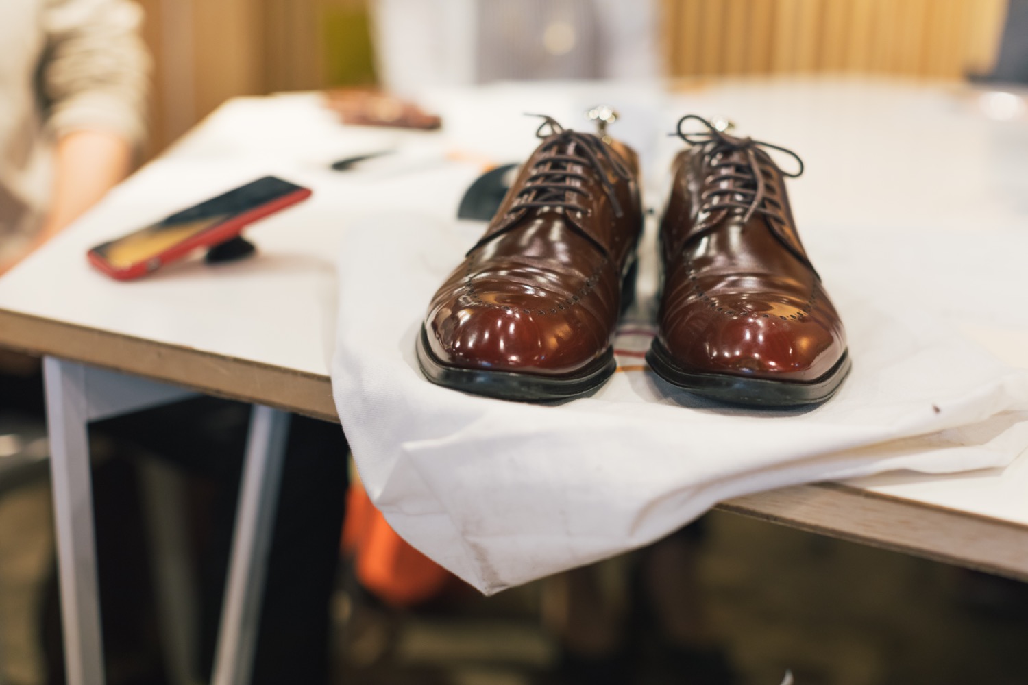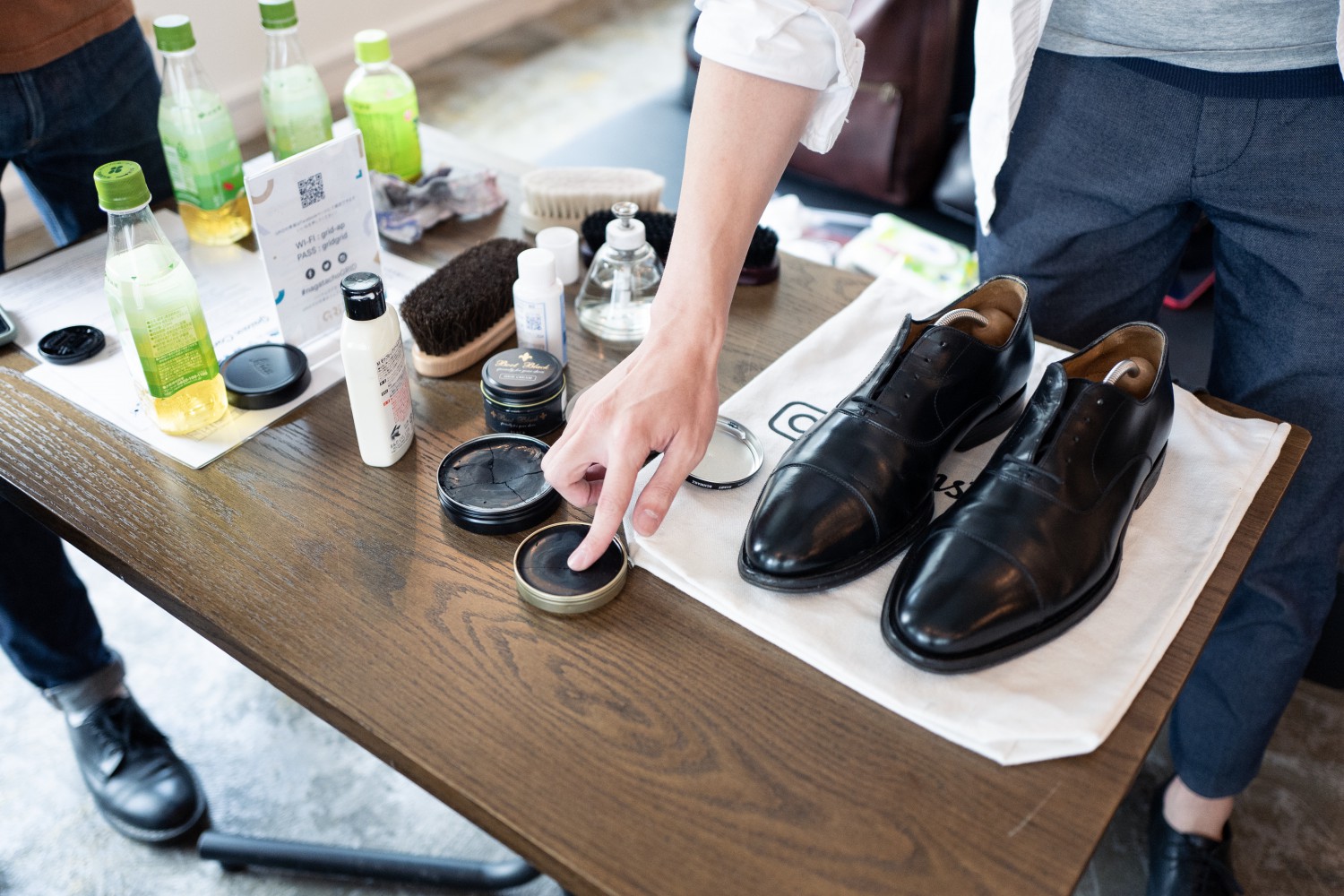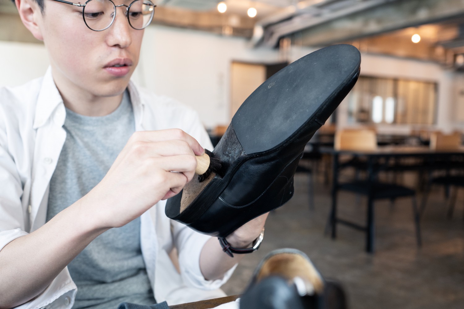 「初めて買った革靴でもう5年も履いている」というその革靴は、何年も履いているとは思えないほどピッカピカ。その驚きを隠せずイベント後に彼と話をしていると「今度、平岡さんの靴も磨きましょうか?」との申し出が。