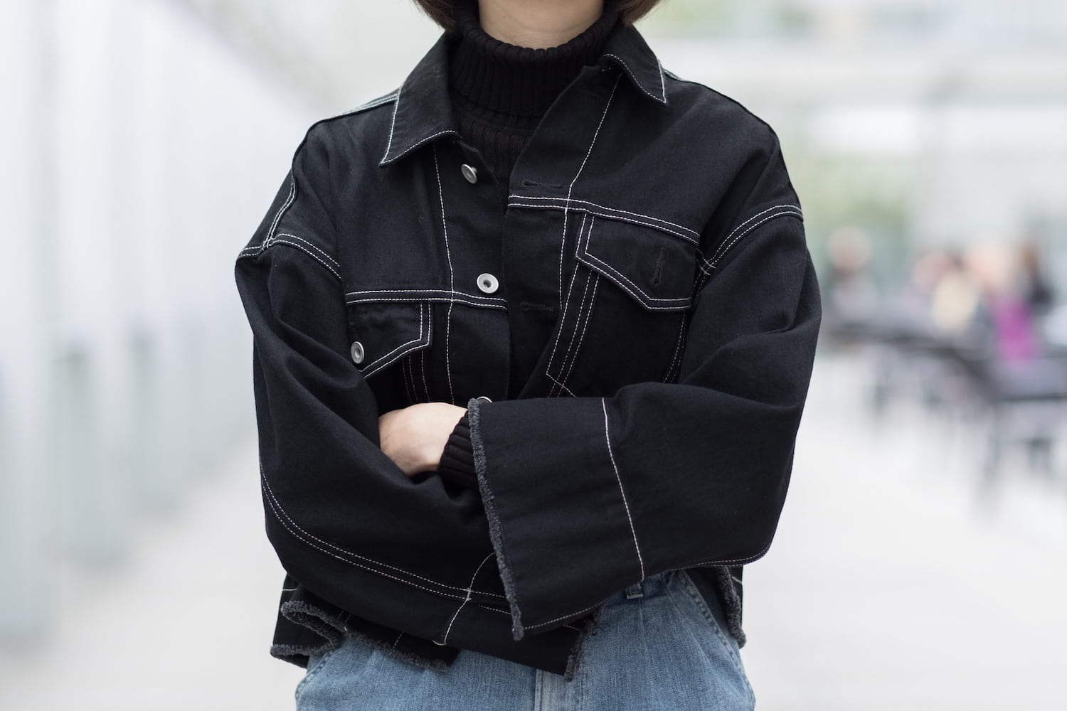 個人的にはこのオーバーサイズのジャケットがとてもおしゃれで素敵でした。黒地のアクセントとして走る白ステッチが可愛い。