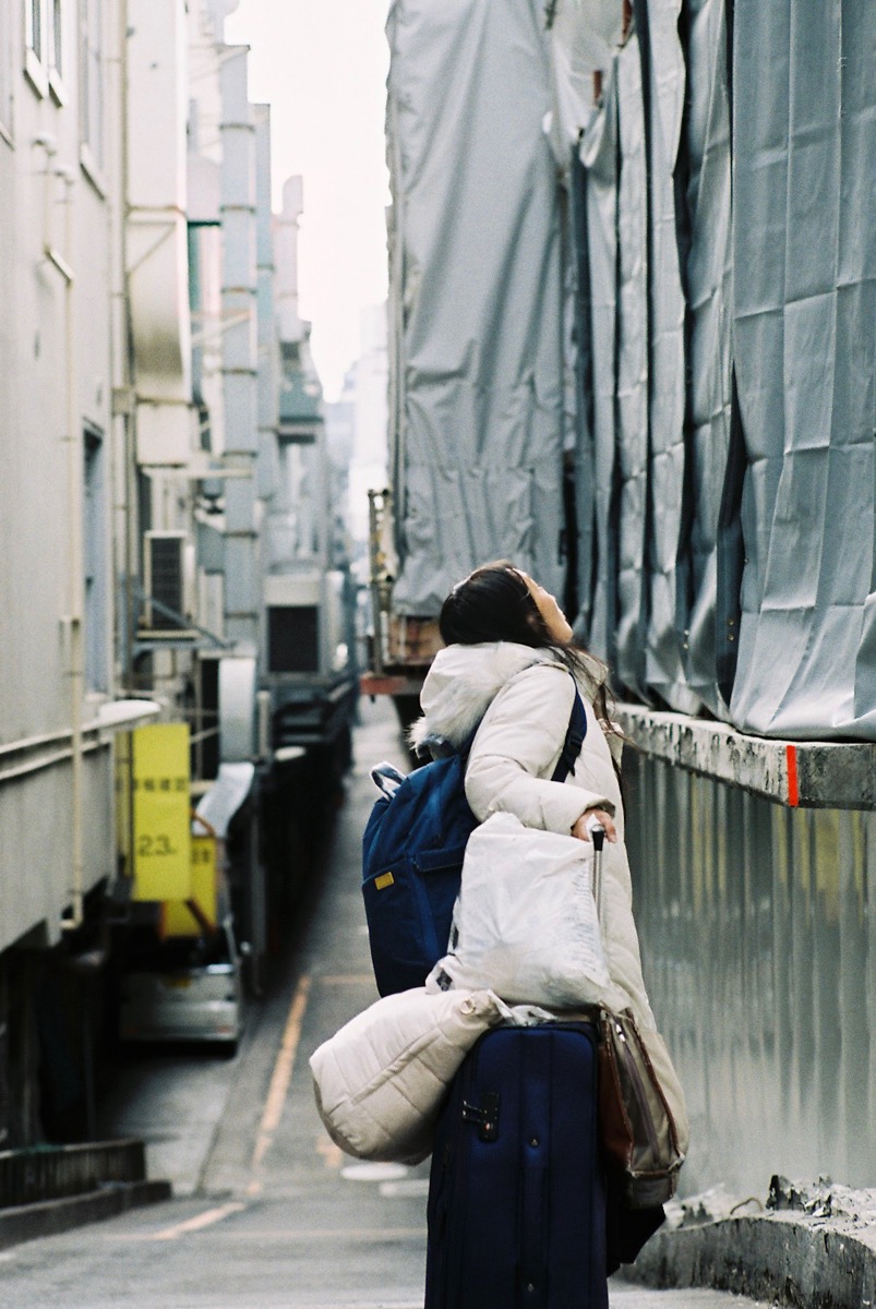 ちなみにこの日の服装はこんな感じ。買ったばかりのDAKSのブルゾンにJANTJE_ONTEMBAARのコートを羽織りました。カメラはLeica M6です。1本目はFUJIFILM 業務用100を使います。