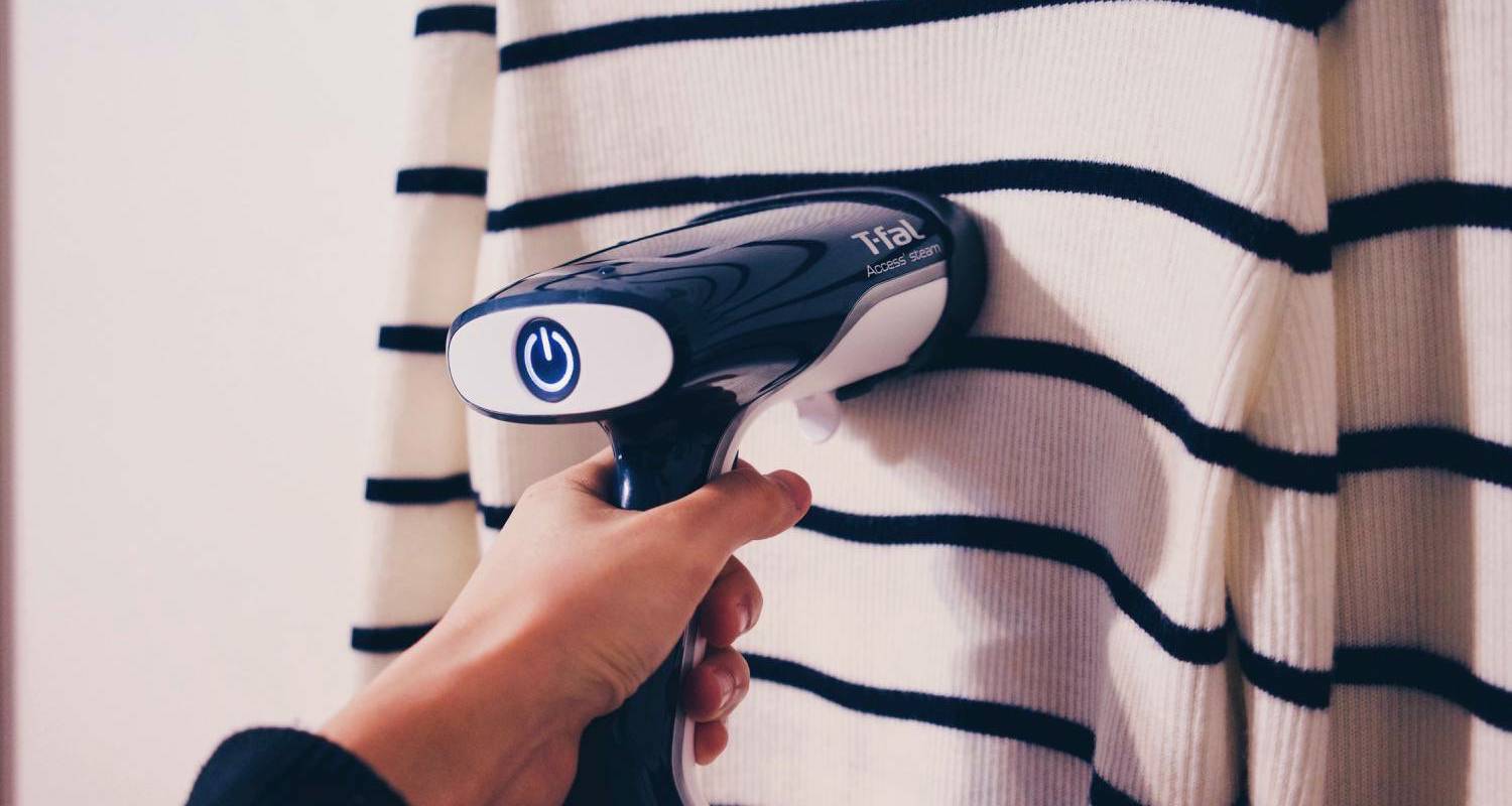 ニットなどはアイロンを直接あてられないので、アクセススチームを使えば生地を傷めずにシワ伸ばしができます。
