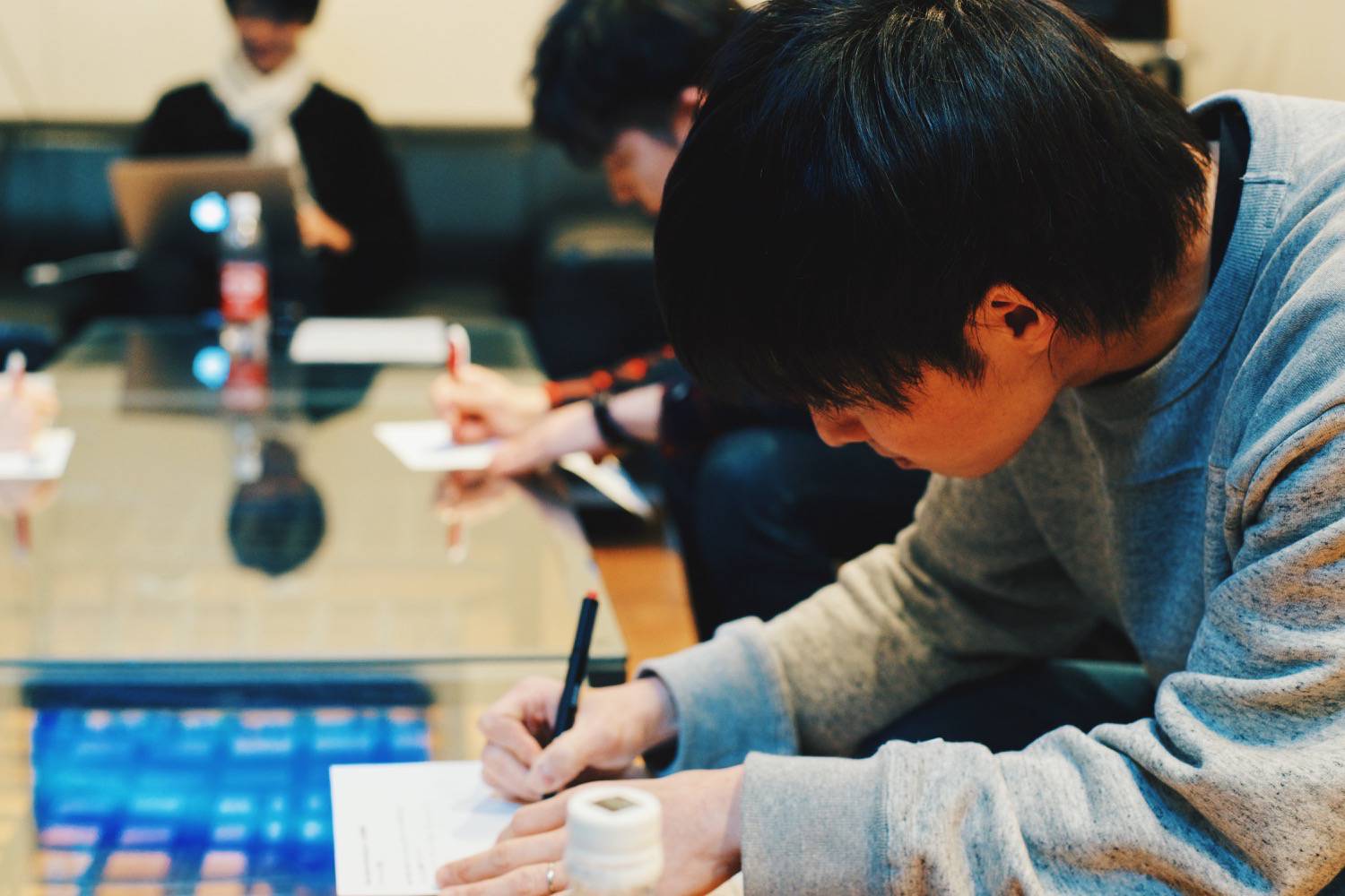 その後すぐに部屋を移し、体験してみて感じたことやVRを活用したビジネスプランなどを各自で考えて書き出します。