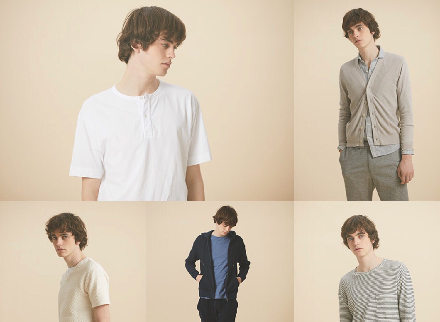 ぼくが着ている無地Tなどベーシックなアイテムを中心に、ポケTやロンT、カーディガンなどを展開。写真からも分かるように、中性的でクリーンなイメージのブランドです。