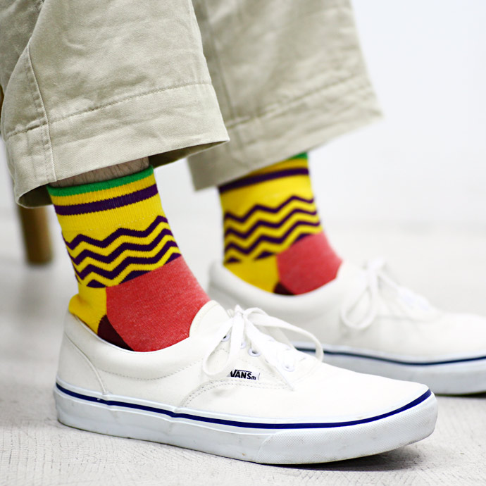 ちなみにオシャレな柄ソックスならスウェーデンのブランド『HAPPY SOCKS』がおすすめ。様々な色・柄のソックスを取り揃える、オシャレソックスの老舗的ブランドです。