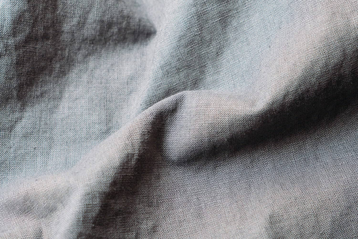 生地感は目が粗くて通気性の良いコットンリネン生地を使用。軽い着心地で、ざらっとしたリネンらしい肌ざわり。腕まくりをすれば夏でも着られそう。