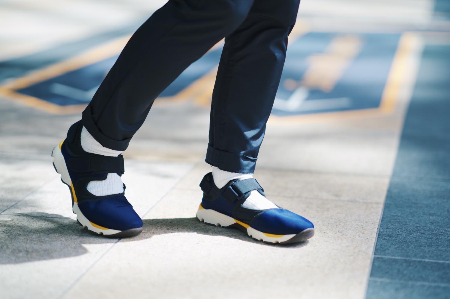ストリートと言っても派手な感じではなく、スタイリッシュなニュアンスのある着こなしが好き。MARNIのネオプレンスニーカーを合わせて、ラグジュアリー感を取り入れてみました。
