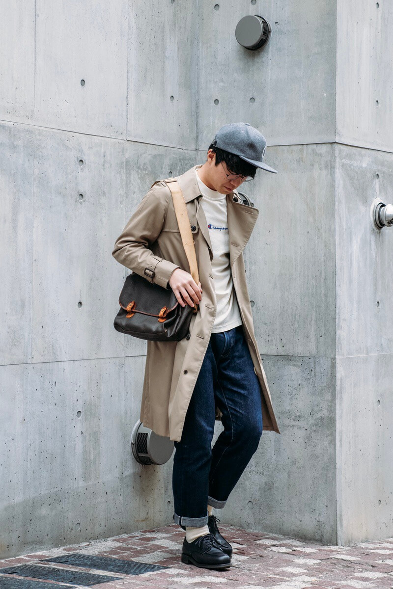 ややゆったり目のシルエットに合わせて、スニーカーもボリュームのあるTomo&Coのフレンチトレーナーを選びました。