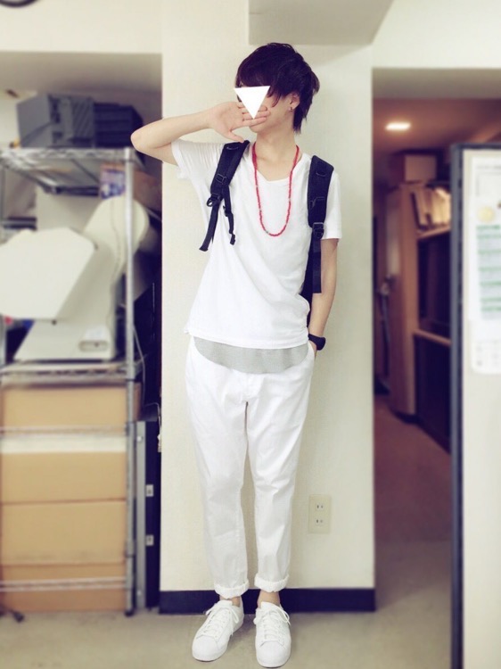 昨年から人気のオールホワイトスタイル。難易度が高いコーディネートですが着こなすコツはポイント的に色味を入れること。
