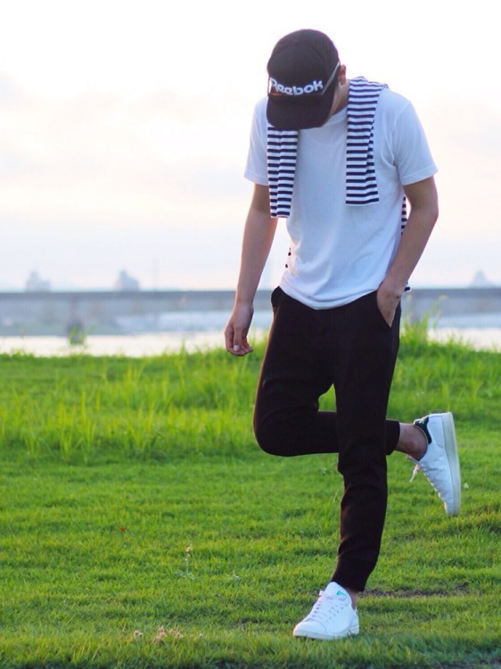同色のポケTも格好良いですし、写真のようにポケットが別生地の場合ポケットとスニーカーの色味を合わせてあげたりすると、さりげないオシャレ感がでます。