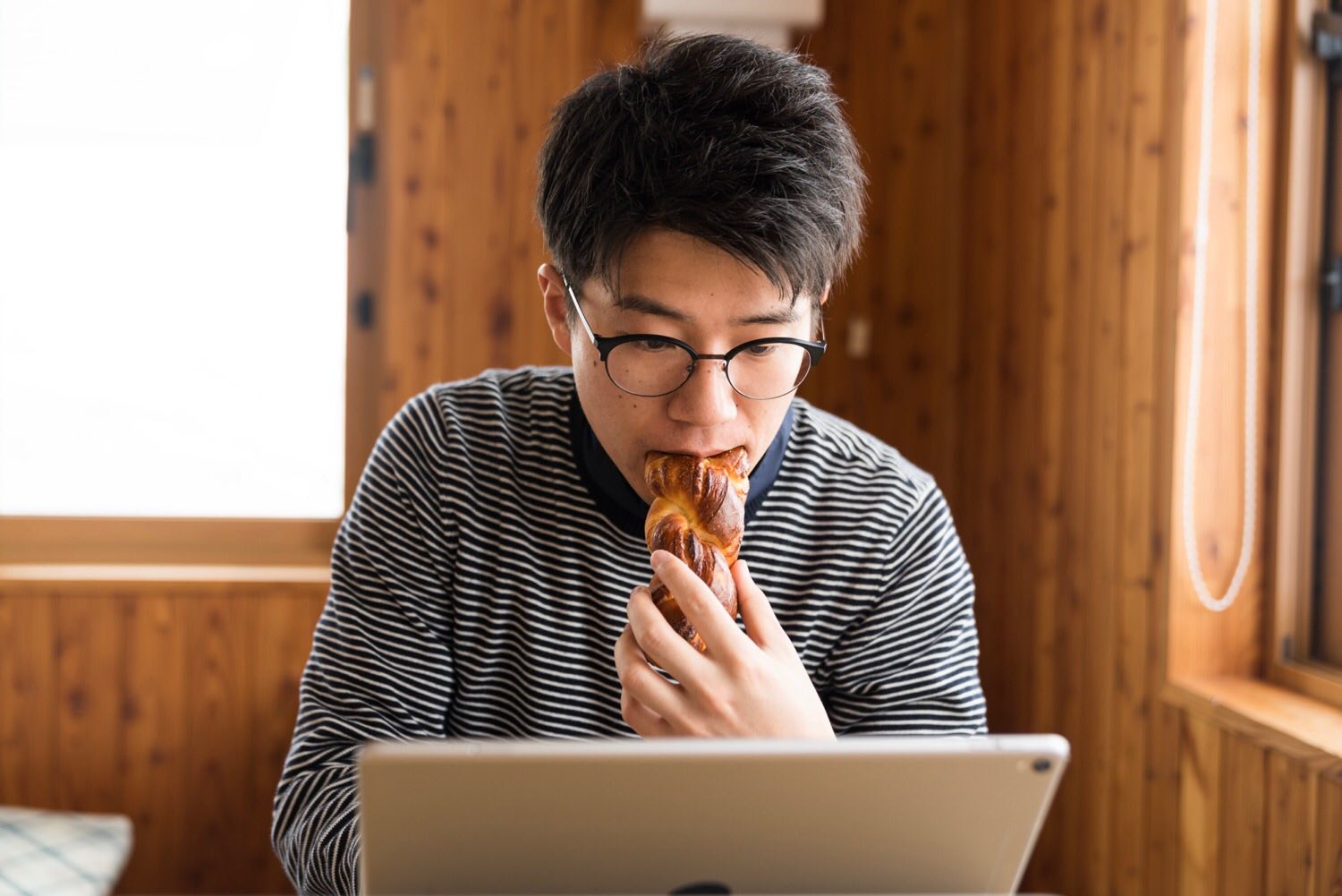 北海道生クリームを使ったパンは素朴だけどクセになるおいしさ!部屋で淹れたコーヒーとパンを片手に溜まっていたメールに返信。
