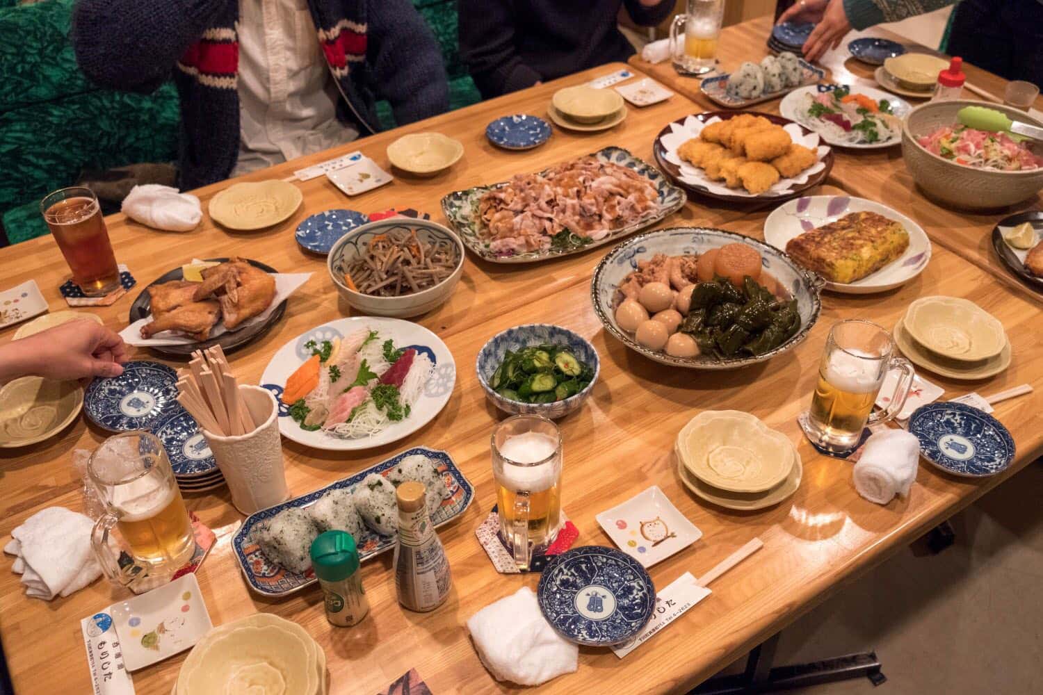 夜は下川町役場の方やそのご友人の方と一緒に地元の居酒屋へ。お店に着くとテーブルにはすでにご馳走が準備されていました。
