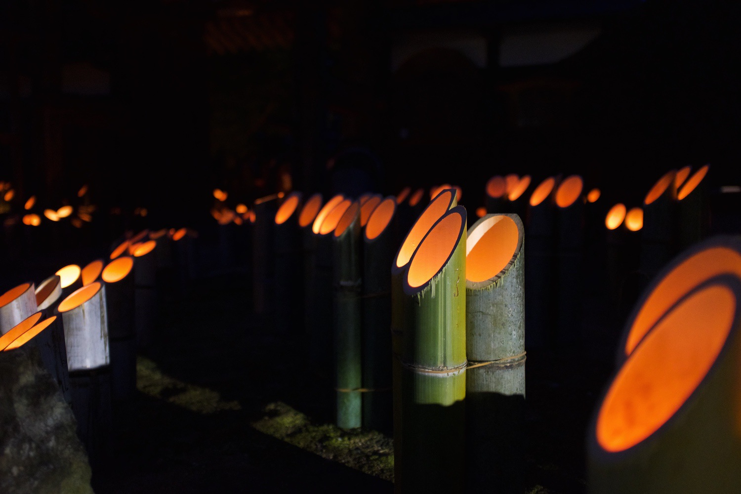 日の入りがもっとも早くなり夜の時間が長くなる秋。ぼんやりと柔らかい竹灯籠の光を眺めたり、宴席を楽しんだりと、自然と夜の楽しみが増える時期です。