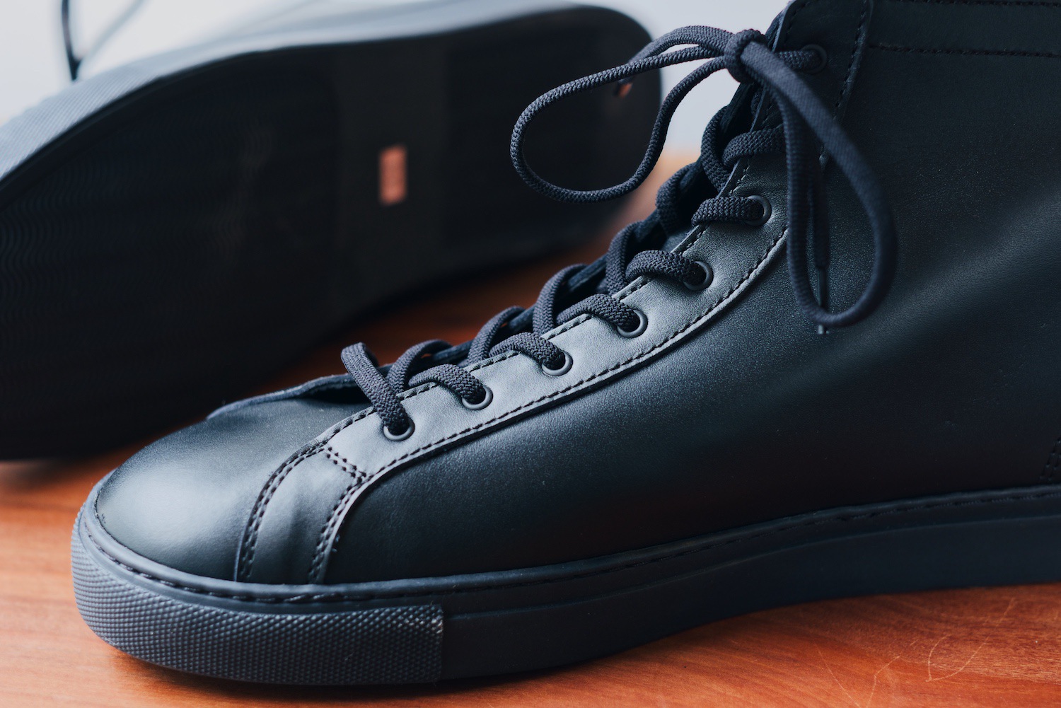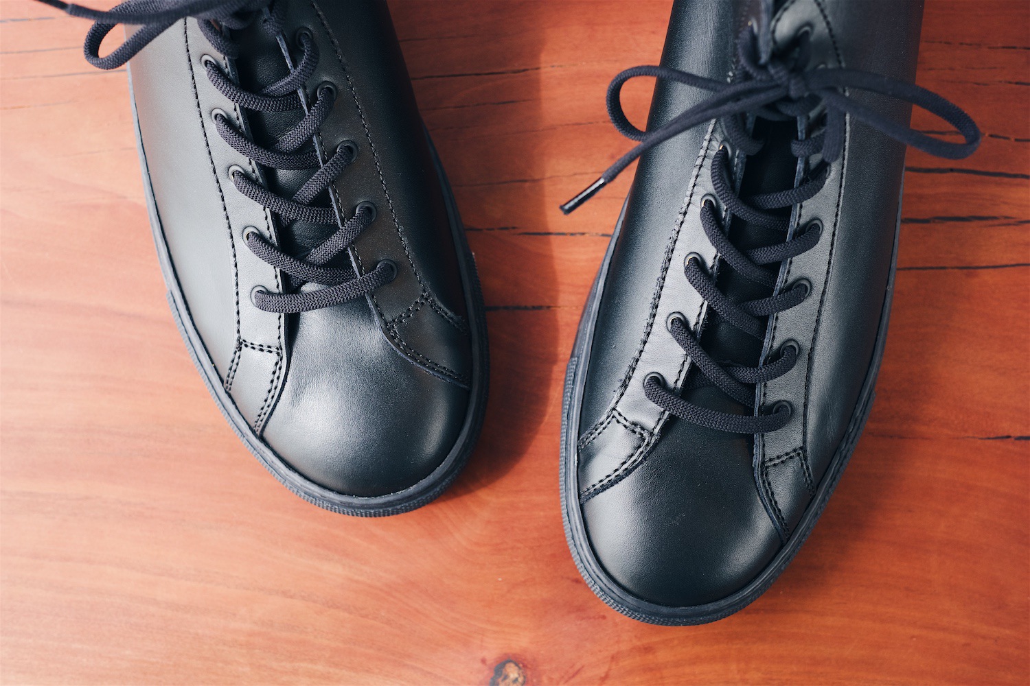 こちらがSTANLEY HIの全体像。オールブラックのレザーアッパーで構築されたクールな表情のスニーカーです。