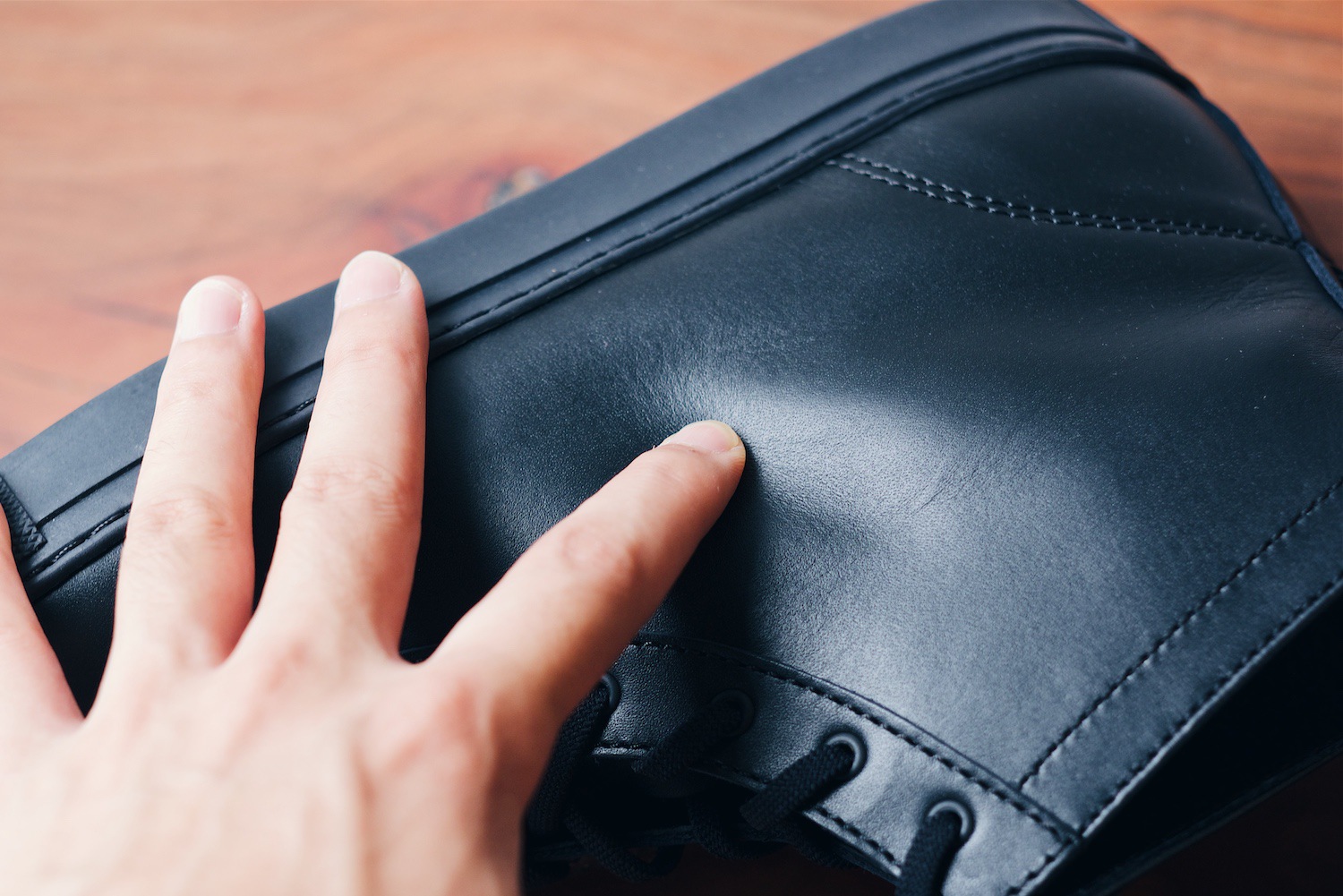 ぐいん!とこのように足を滑らせれば流れるように足が吸い込まれていきます。最初は革にハリがあるので慣れるまでちょっと履きづらいですが、慣れるとかなり楽に履くことができます。