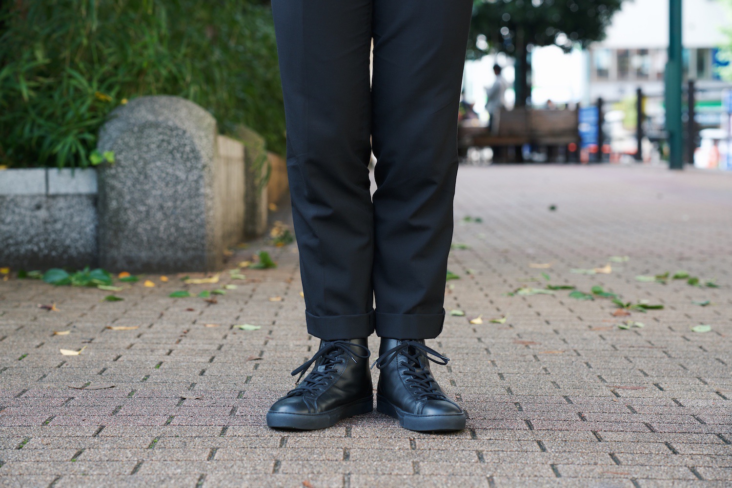 そうやって無駄を徹底的に削ぎ落として洗練させた結果、オンにもオフにも使えるハイカットスニーカーという稀有な一足が出来上がりました。